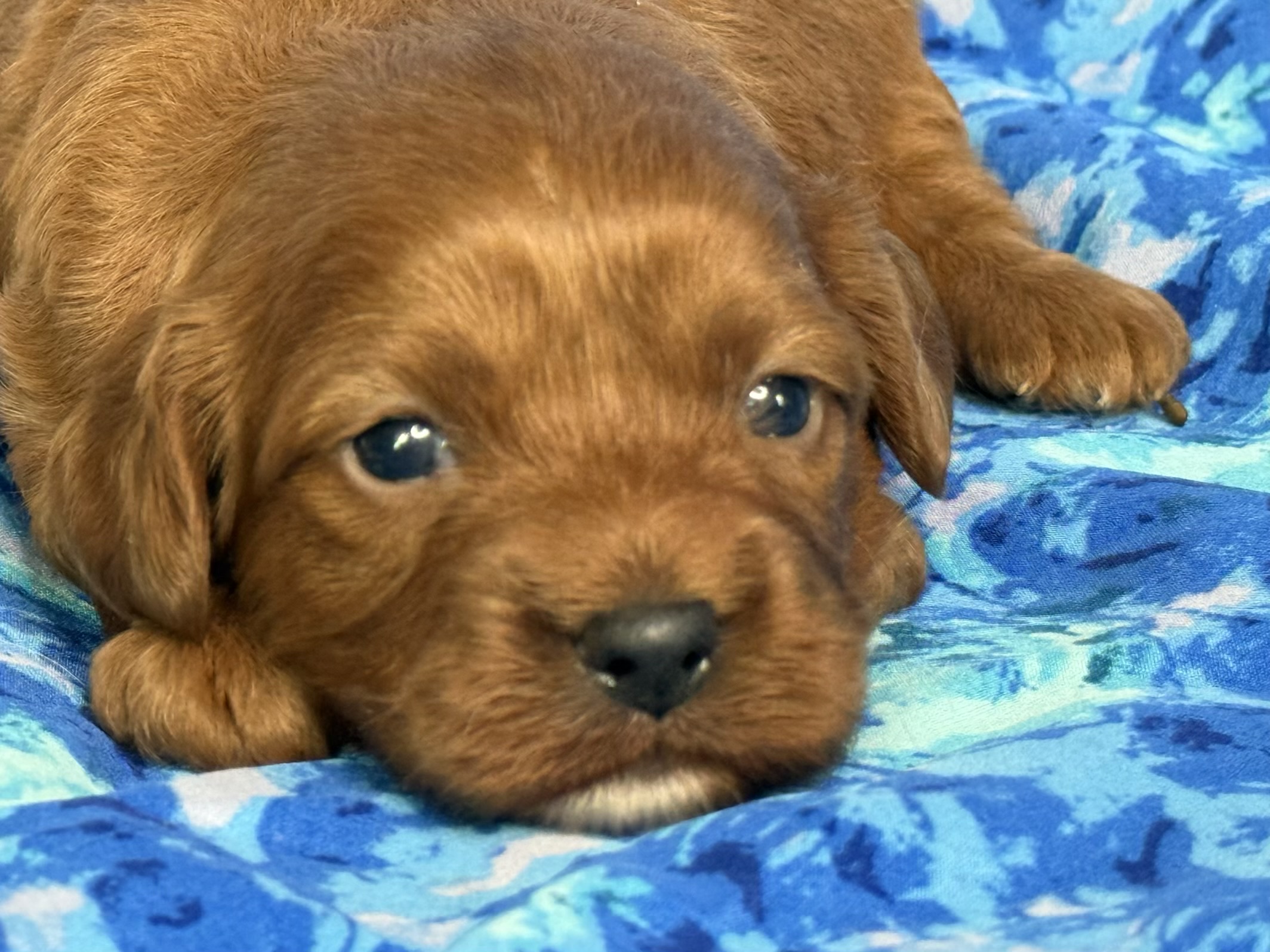 3. Huddle – The snuggler of the group, Huddle brings everyone together with his warm, loving spirit. A perfect name for a Cavapoo who loves to be close and cuddle after a good playtime session. Blenheim boy