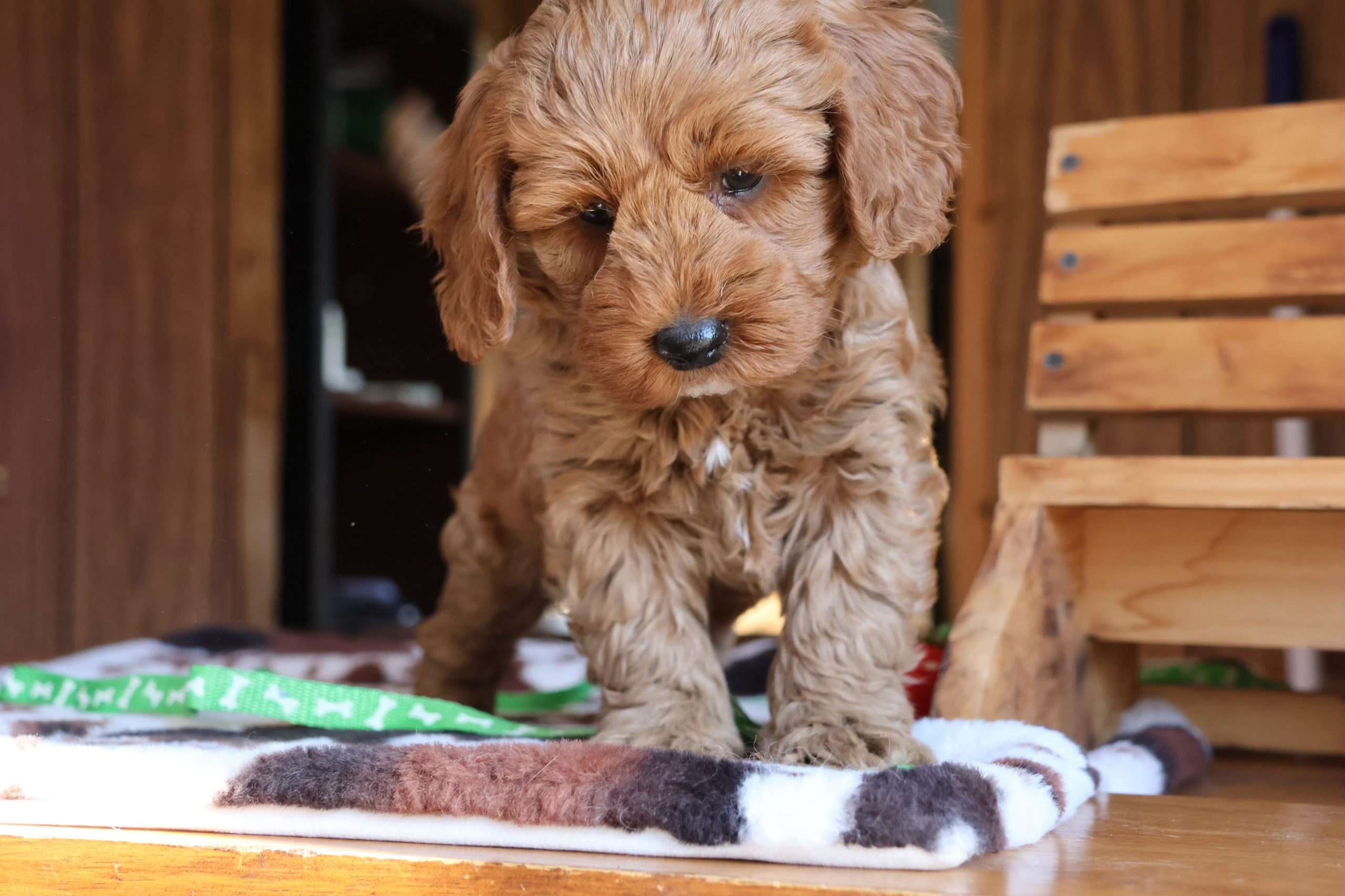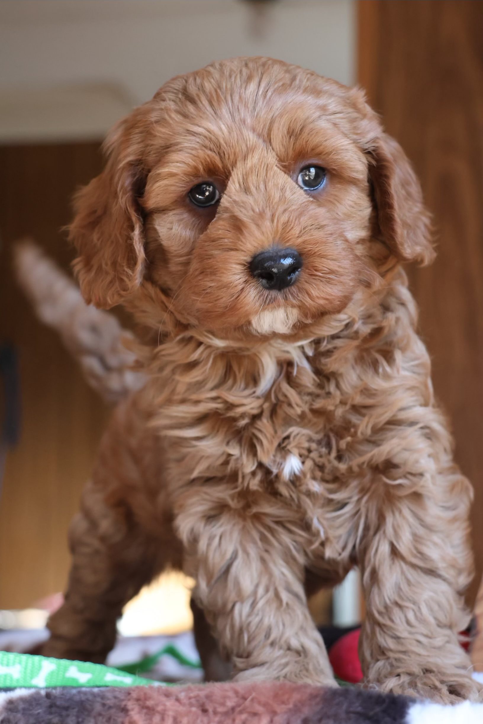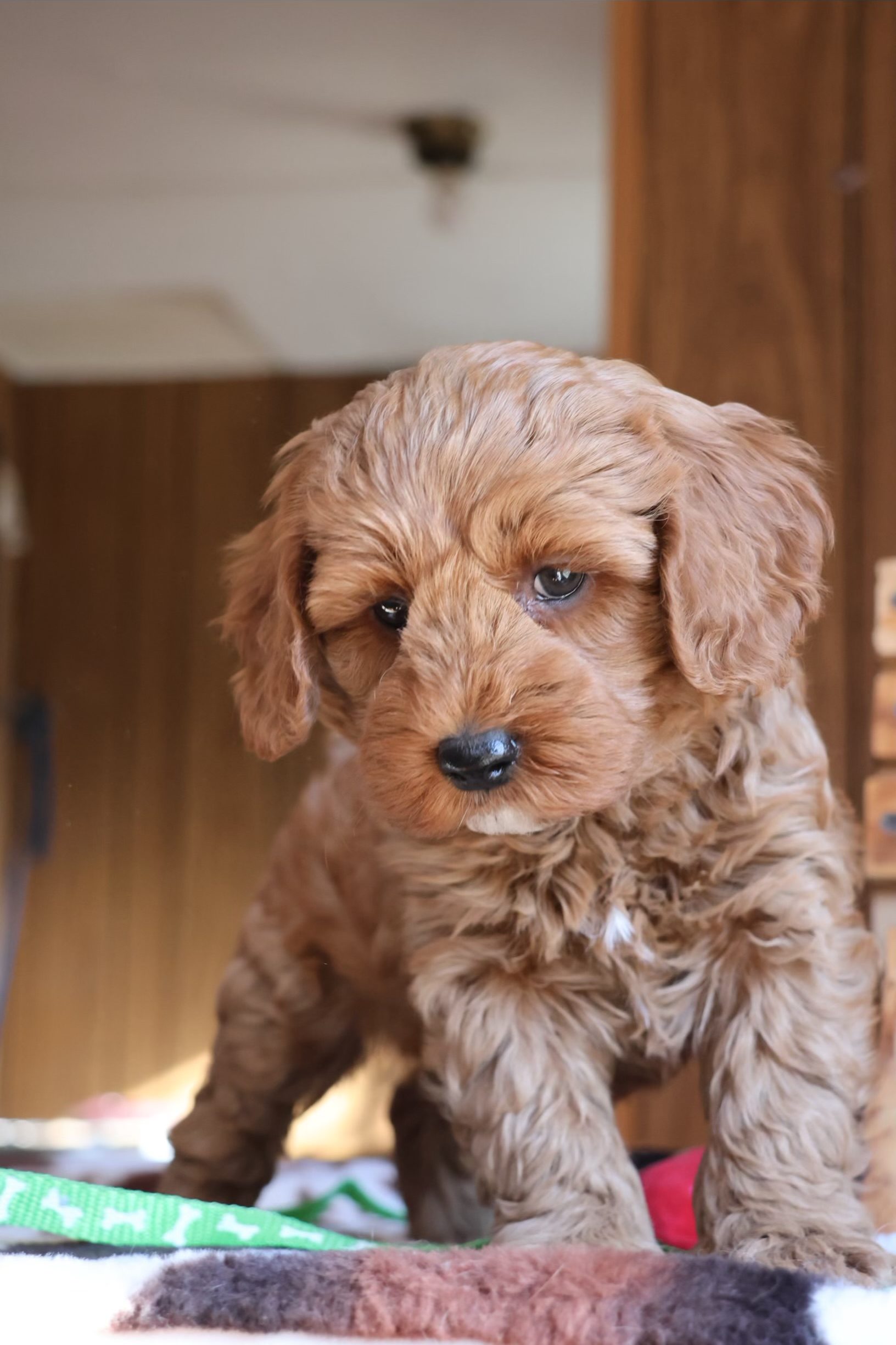 We are thrilled to announce a rare and breathtaking litter of three male dark red F1b Maltipoos — the deepest, richest red you’ll find in this breed! Pictures taken on 12.21.25