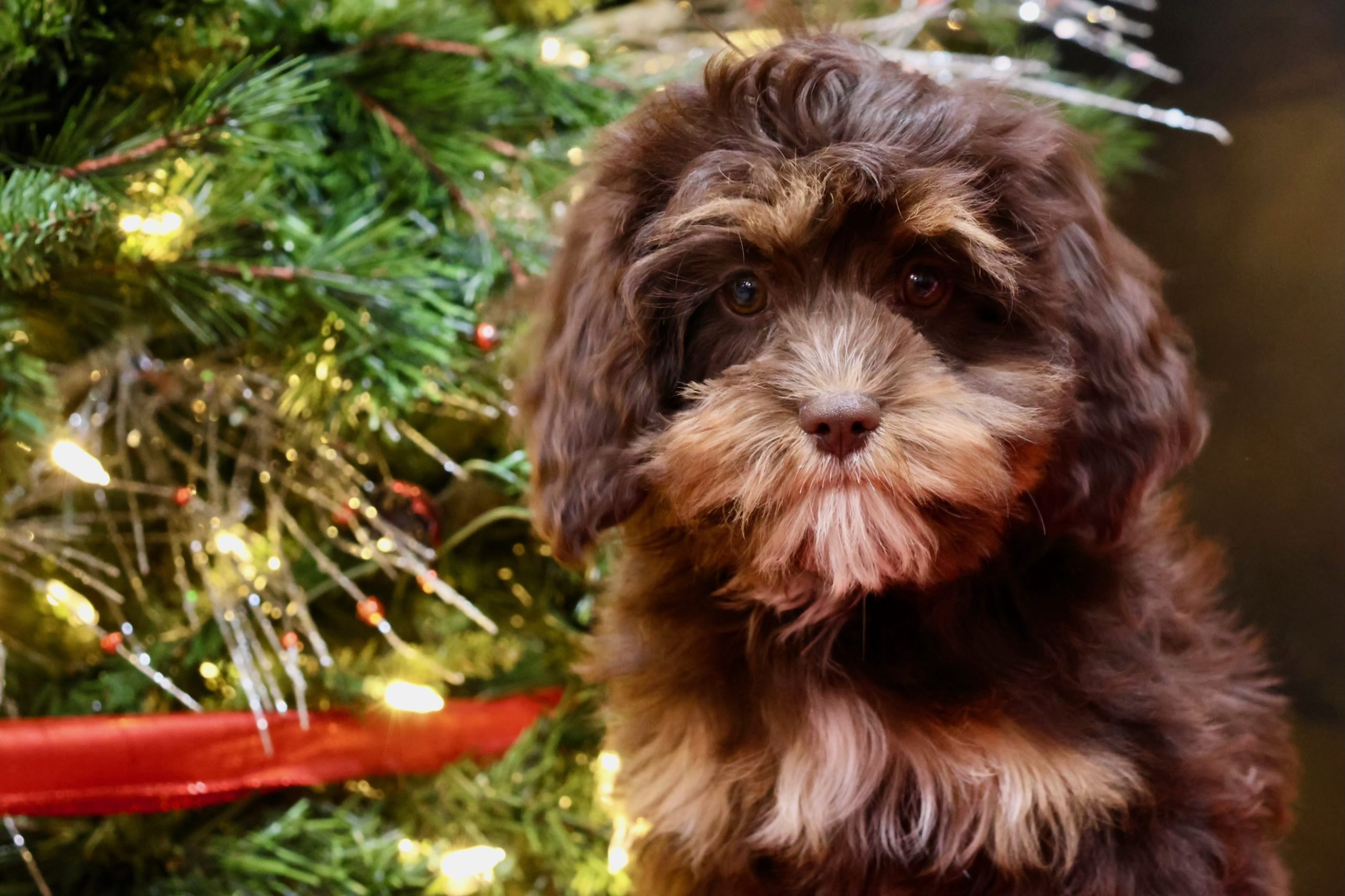 Our handsome trio of F1 Cavapoo boys are dressed in rich fall shades of chocolate and apricot. Born August 28, these little gentlemen will be ready to join their forever families on October 24. Expected to reach 13–15 lbs full grown, they’re the perfect size for snuggles on the couch or adventures outdoors.