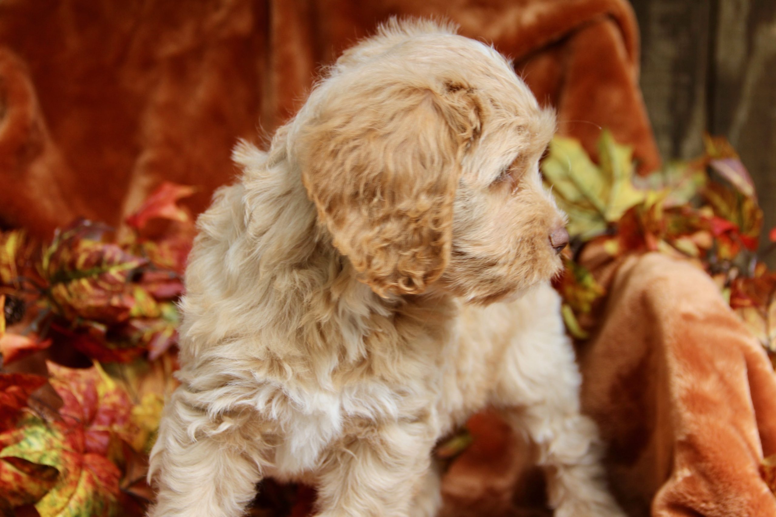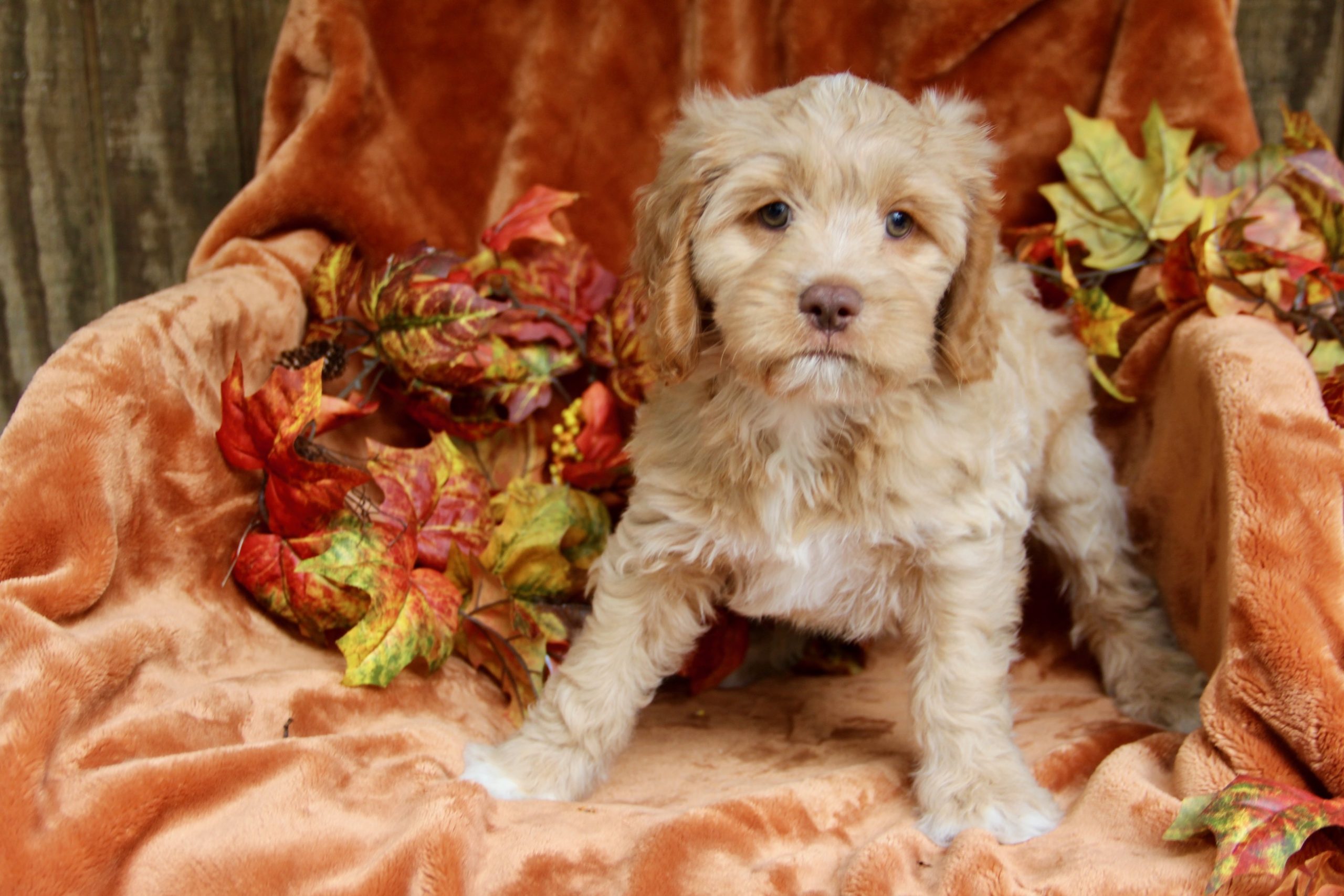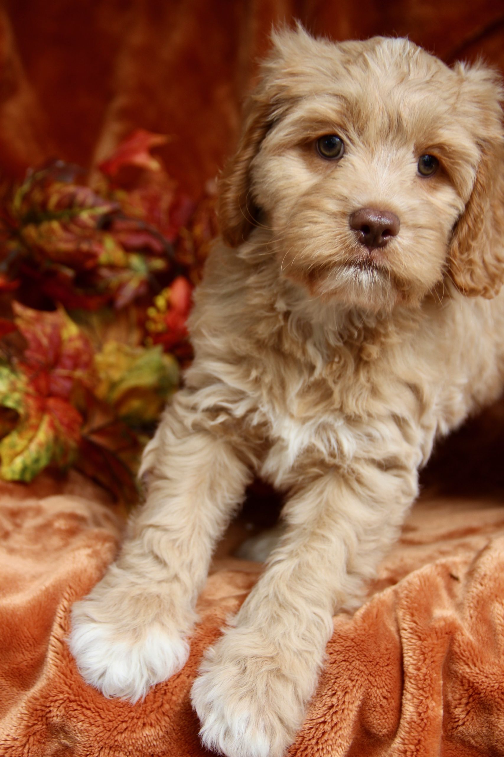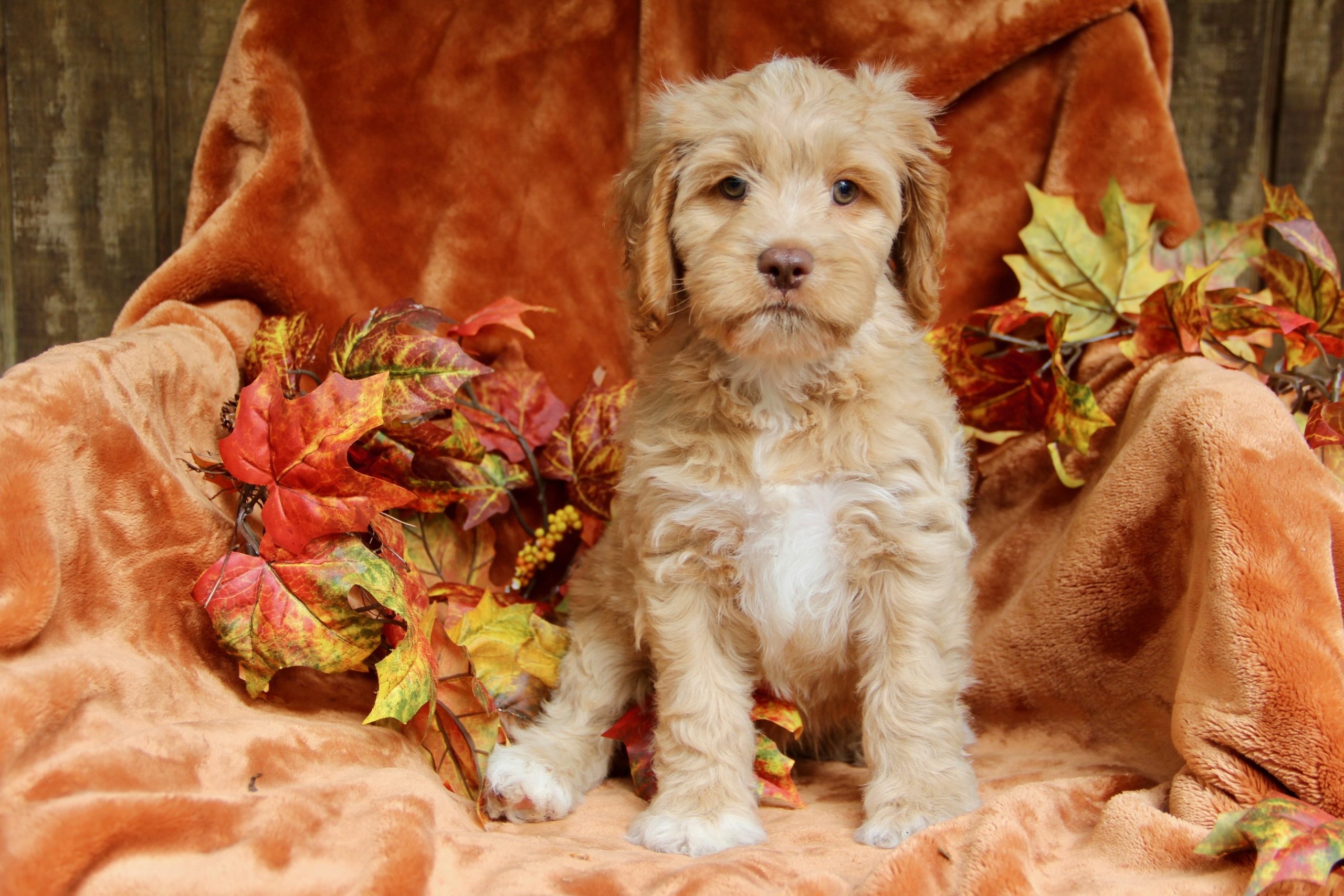 Our handsome trio of F1 Cavapoo boys are dressed in rich fall shades of chocolate and apricot. Born August 28, these little gentlemen will be ready to join their forever families on October 24. Expected to reach 13β15 lbs full grown, theyβre the perfect size for snuggles on the couch or adventures outdoors.