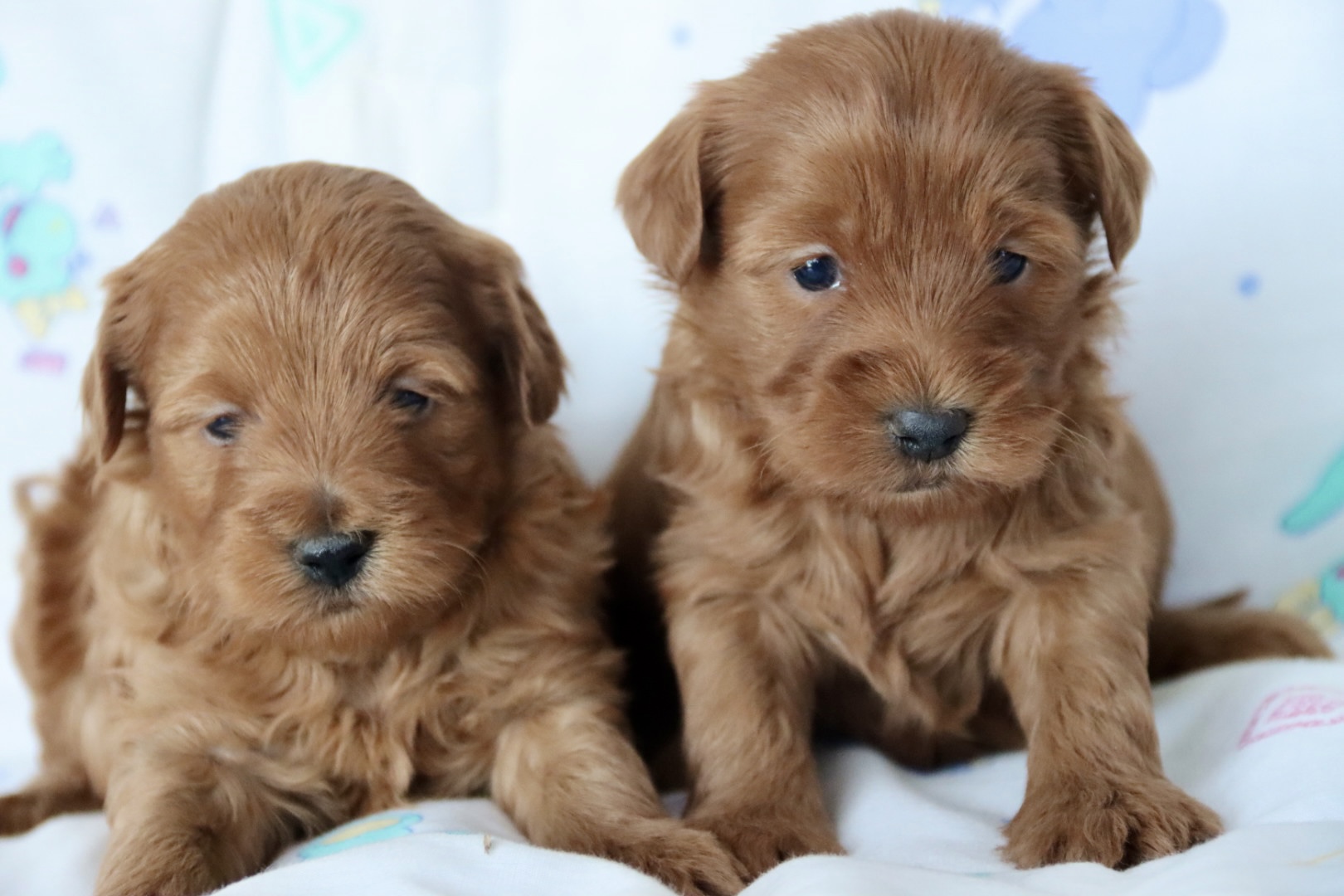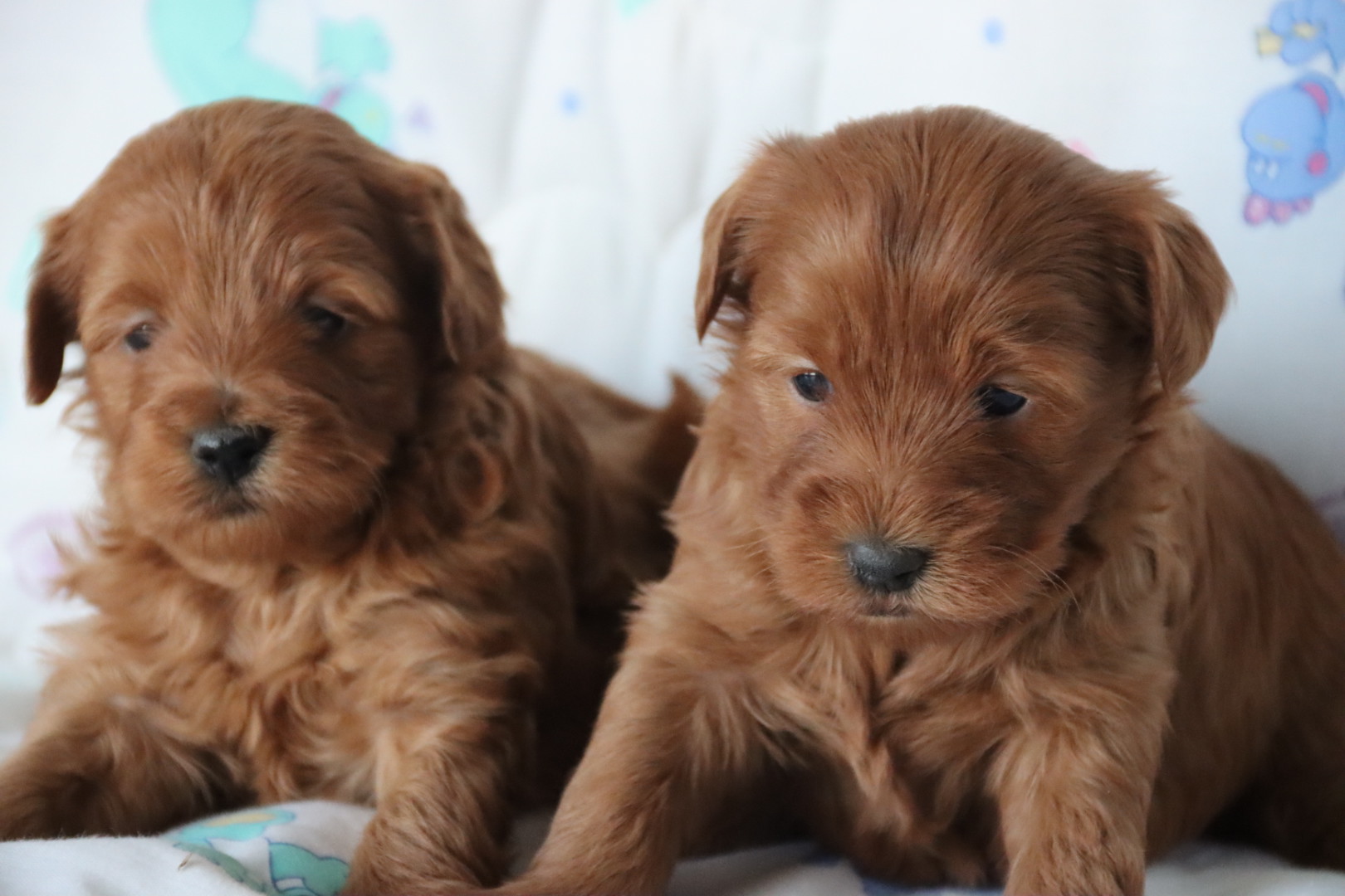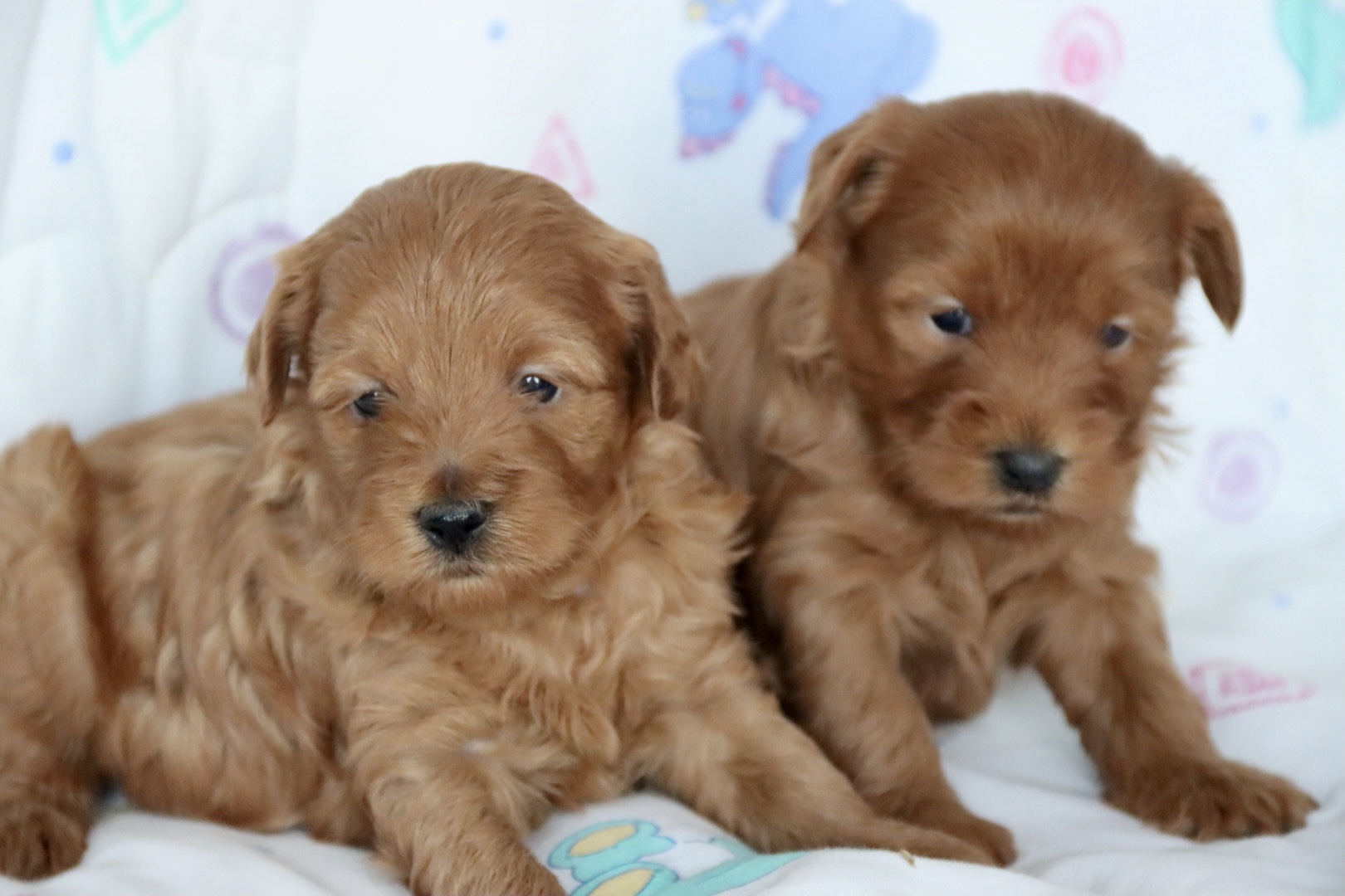 CLOVER is a petite, teddy-bear-featured deep red girl expected to have a silky, low-to-non shedding hypoallergenic coat. Projected adult weight is approximately 8–9 pounds, making her an ideal tiny companion for families or lap-dog homes. Clover Kiss is anticipated to have a loving, gentle, slightly playful personality with strong bonding tendencies — a hallmark of well-bred Maltipoos. With strong red genetics from Phoenix and refined structure from Chloe, she is expected to hold her rich coloring beautifully into adulthood. Born January 6, 2026, and ready March 6, 2026.