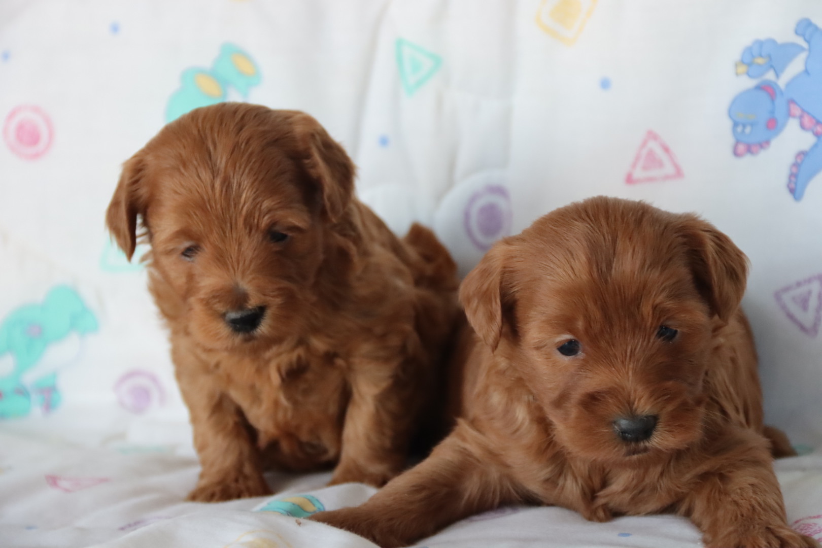 CICI is expected to be a tiny, doll-faced deep red F1B Maltipoo with a plush, non-shedding hypoallergenic coat. Estimated to mature around 8–9 pounds, she is bred to be the perfect purse-size companion with a sweet, gentle, very people-oriented personality. Cici Belle is expected to be affectionate, soft-natured, and happiest when cuddled close — a beautiful reflection of Chloe’s Toy Poodle elegance paired with Phoenix’s rich red coloring and loving Maltipoo temperament. Born January 6, 2026, and ready for her forever home March 6, 2026.