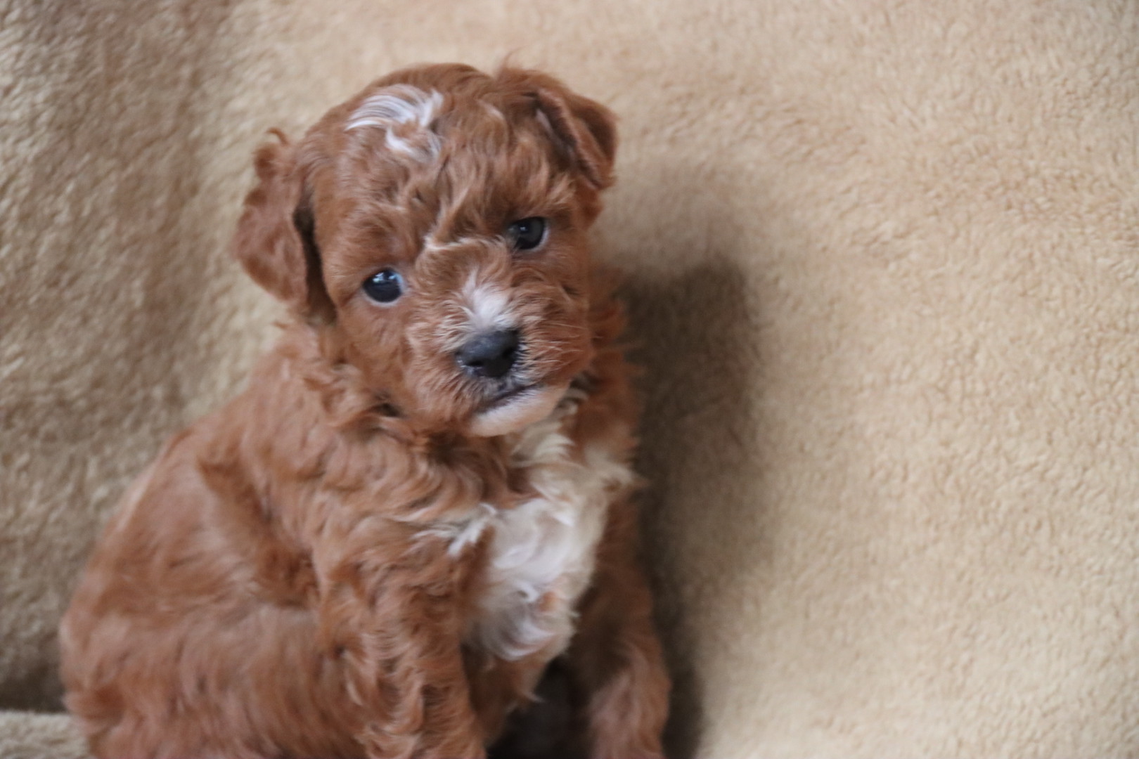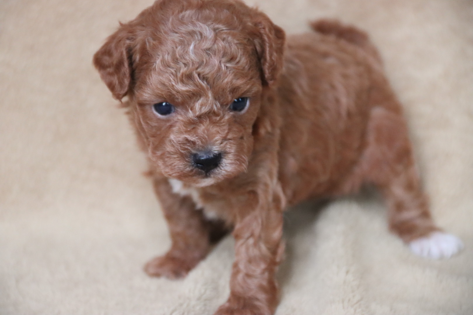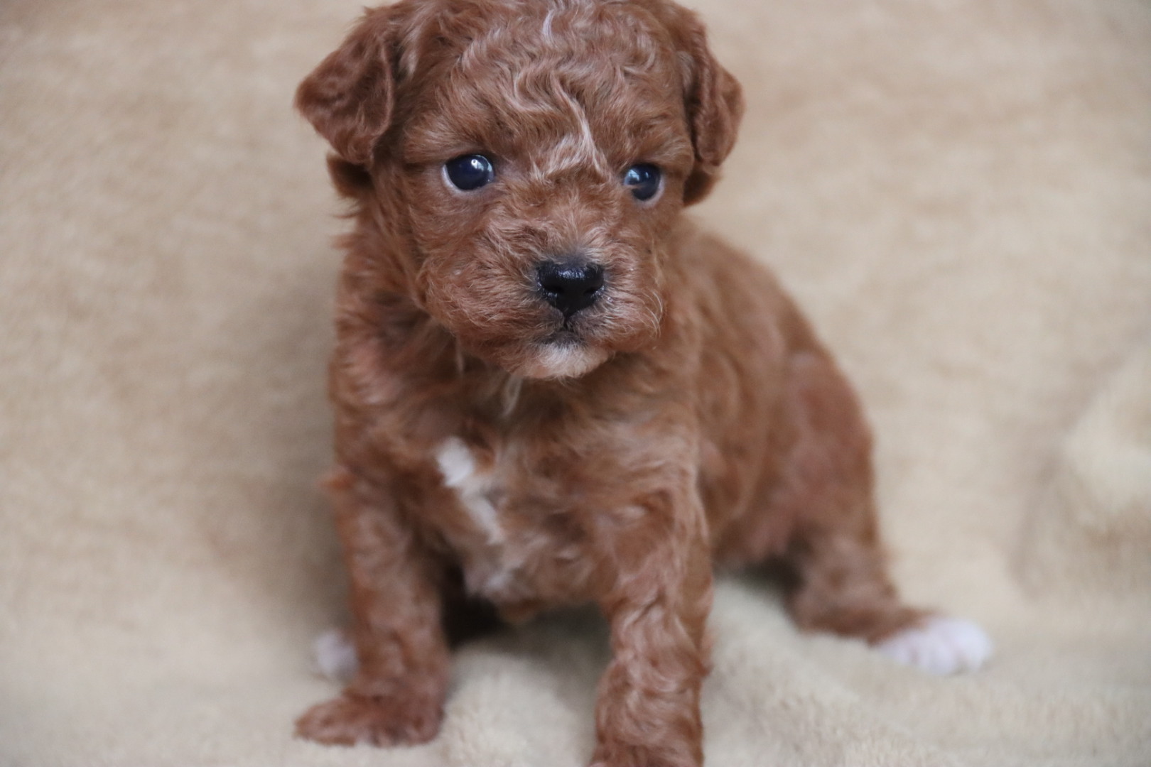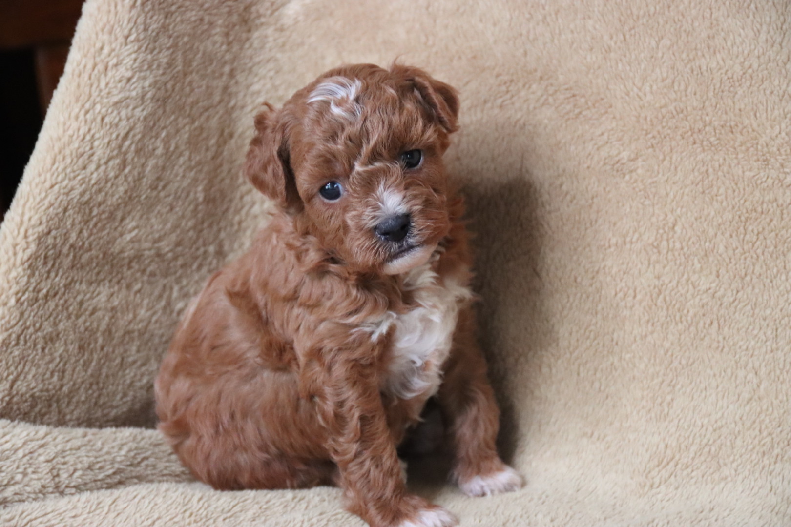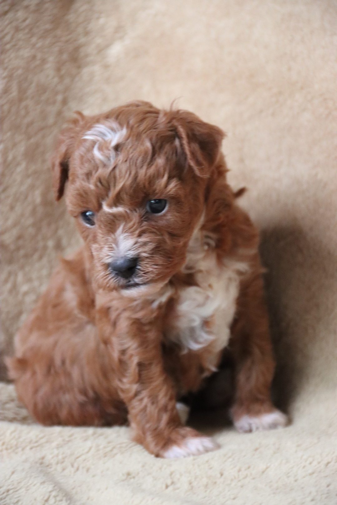 Born to Destiny, an 8-pound tri-parti Toy Poodle, and Phoenix, a 9-pound red Maltipoo, Chester carries wonderful genetics for both color and temperament. He is expected to mature between 7–9 pounds, making him an ideal tiny toy companion.
