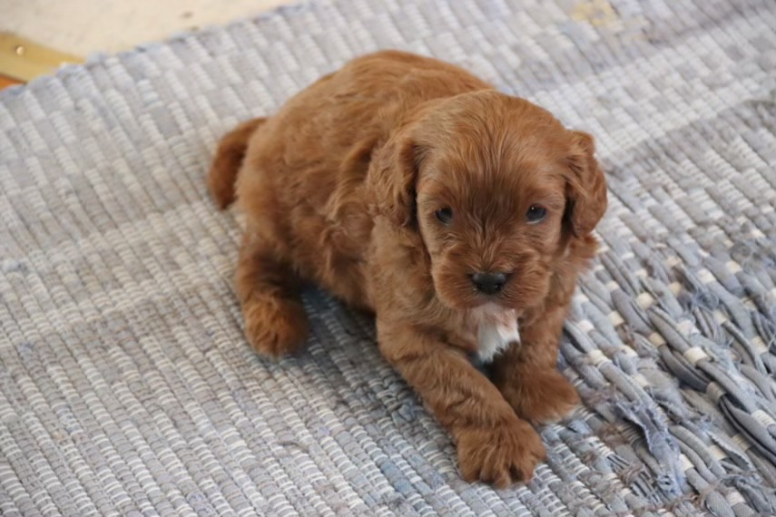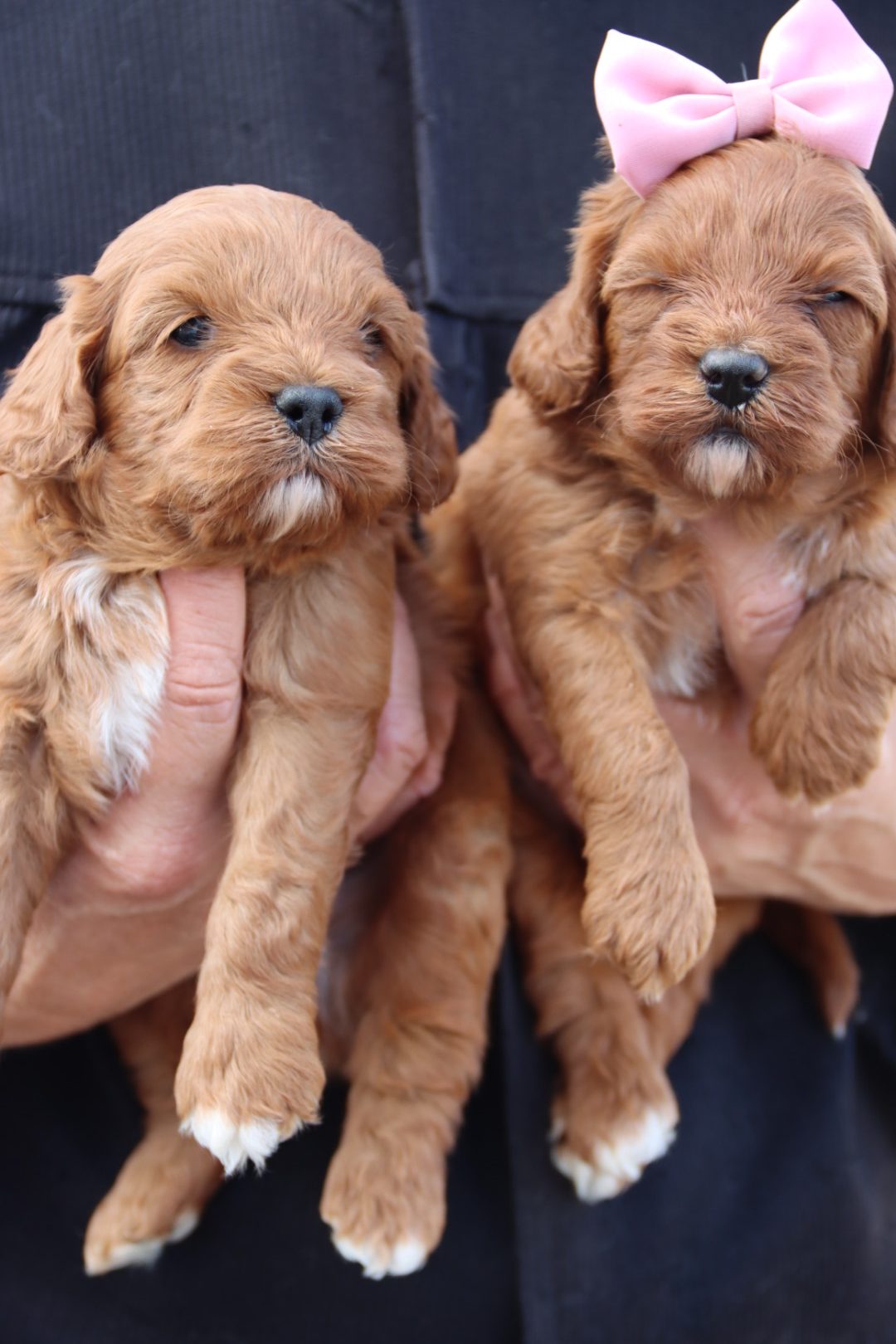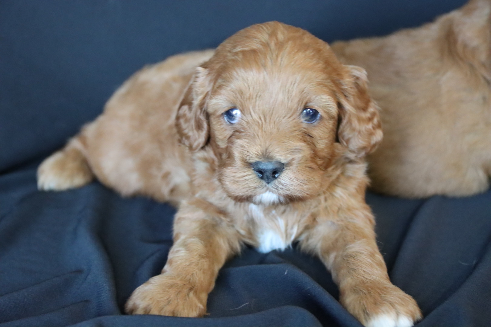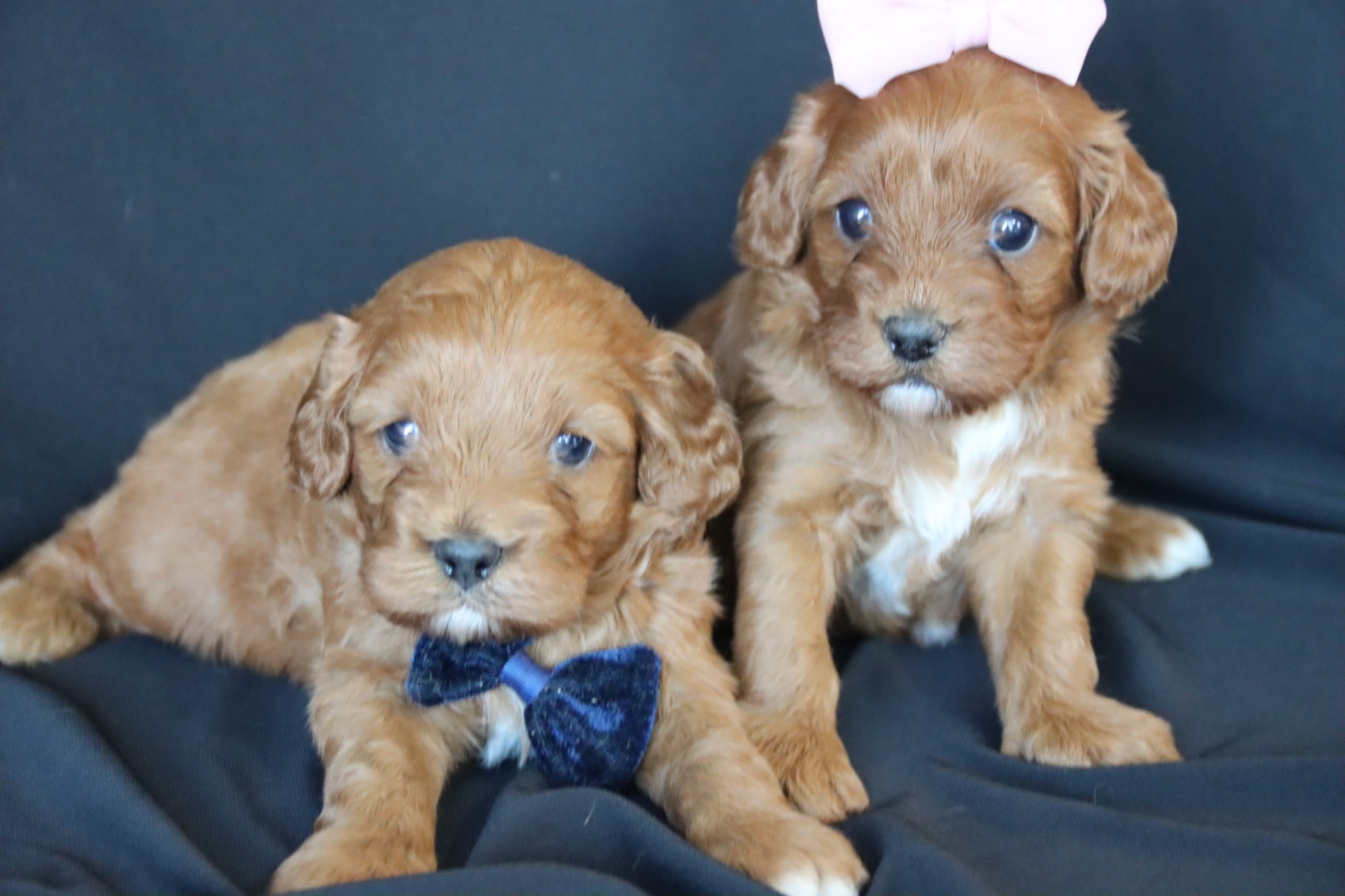 Born on November 27, 2025, this special litter consists of just one male and one female, making it an incredibly exclusive pairing. Their proud parents, Little Red (dad) and Russo (mom), passed down not only their rich red coloring but also the gentle, loving temperament Cavapoos are so well known for.