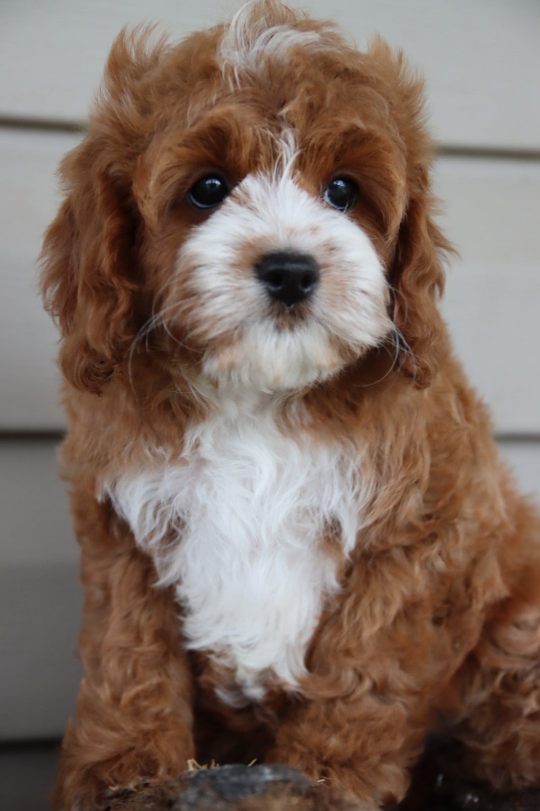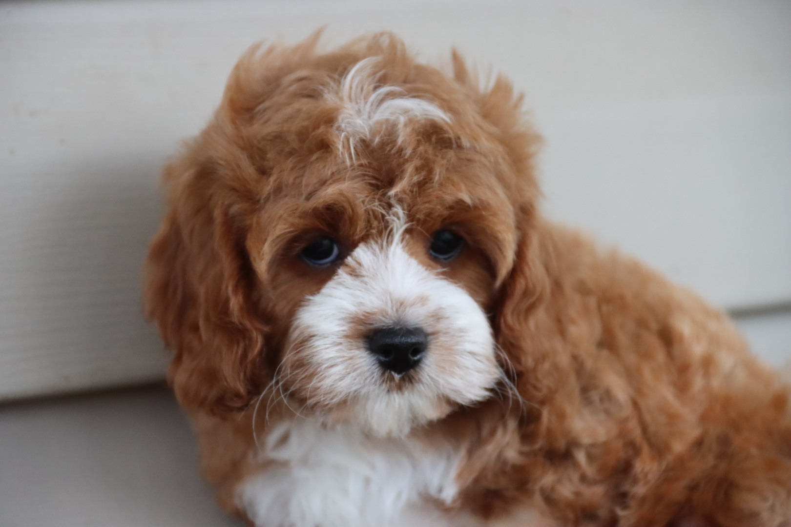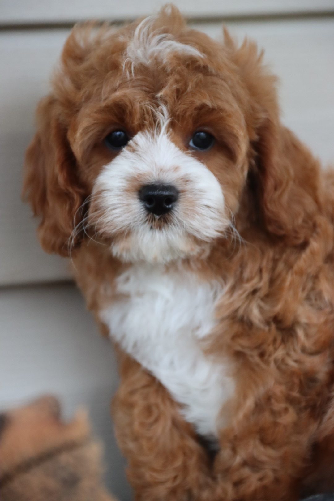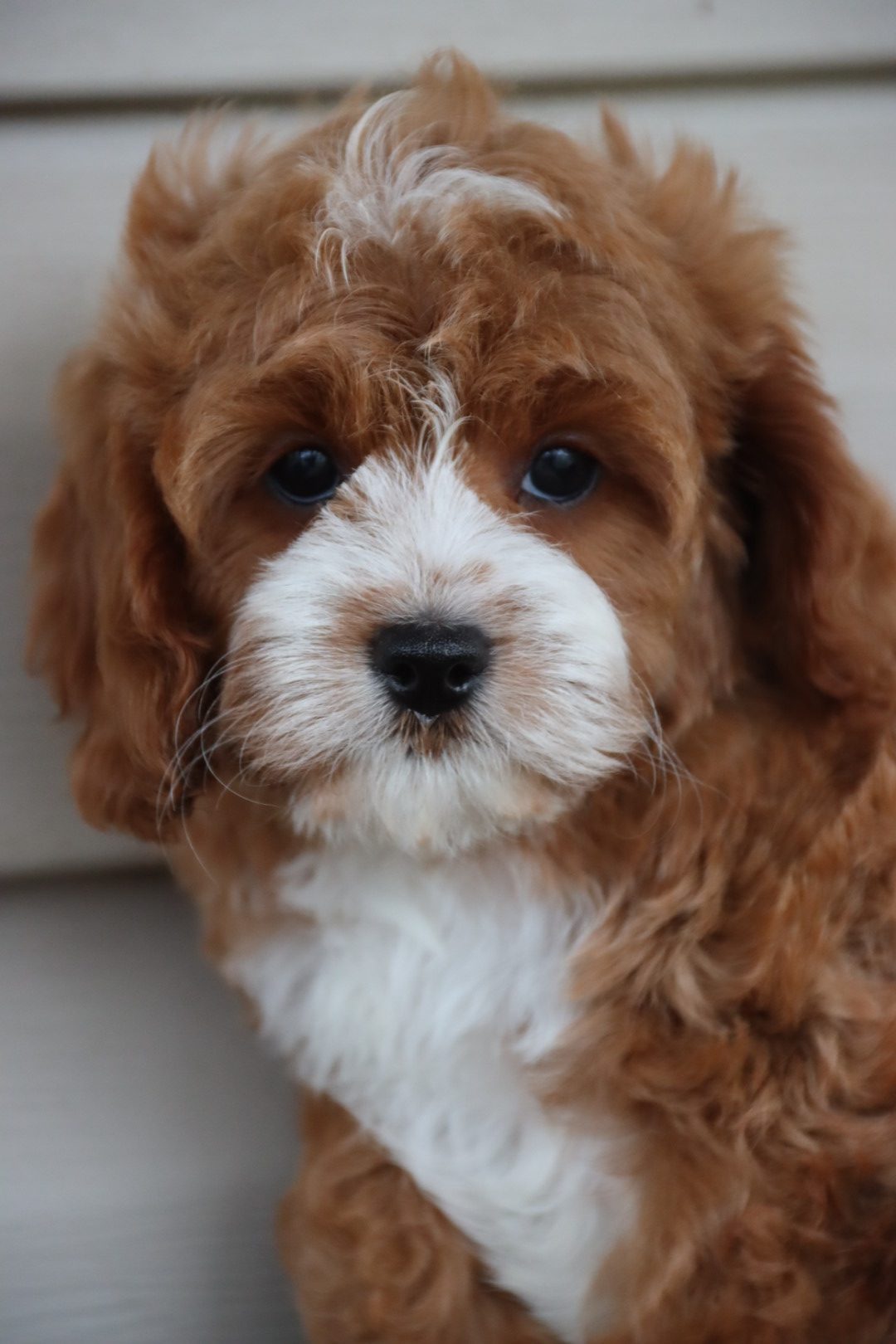 Lady is a stunning ruby-colored F1 Cavapoo who truly lives up to her name with her gentle spirit and elegant little presence. Her rich red coat and sweet expression give her that classic Cavapoo charm that melts hearts instantly. Lady is expected to reach an adult size of approximately 10–12 pounds, placing her on the smaller side and making her perfect for both cozy homes and active families.
