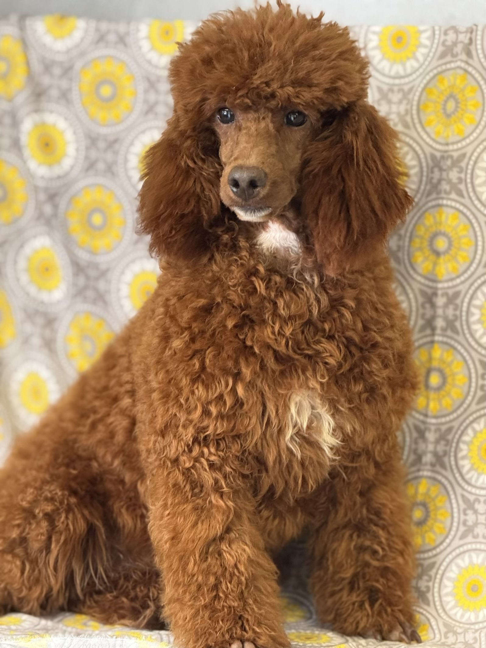 Zuzu — 13 lb Mini Poodle (deep red coat, elegant build)
