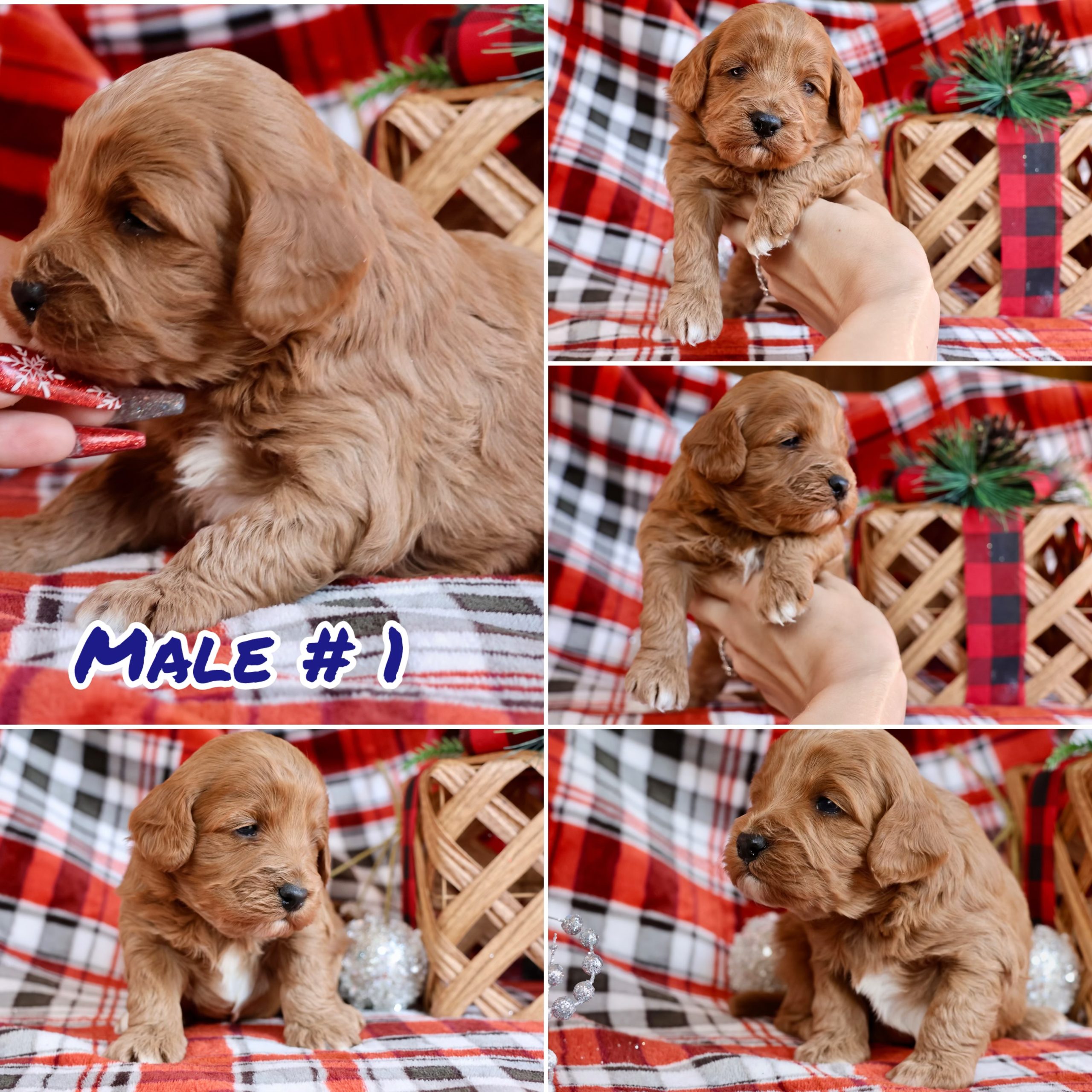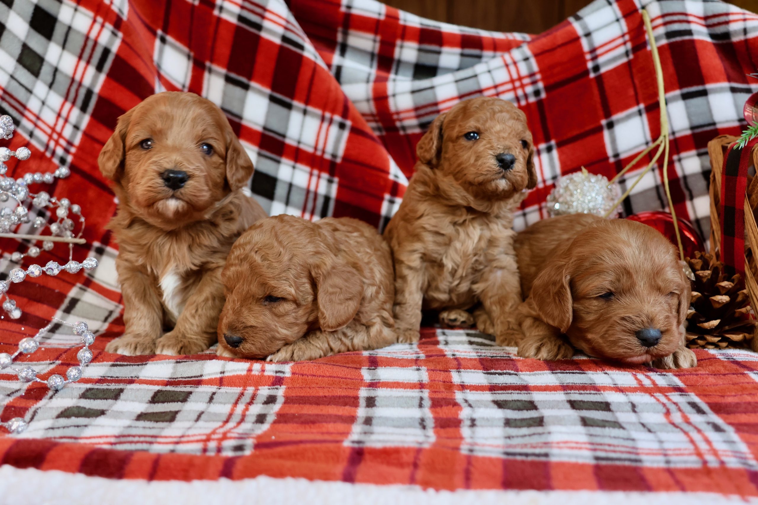 We are thrilled to announce a rare and breathtaking litter of four male dark red F1b Maltipoos — the deepest, richest red you’ll find in this breed! Pictures taken on 12.21.25