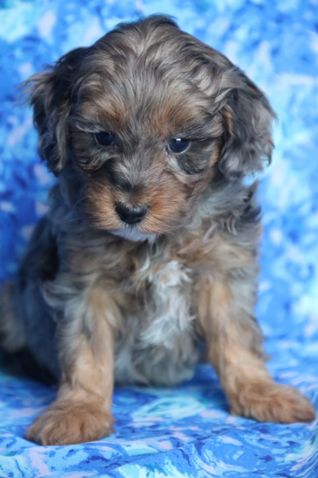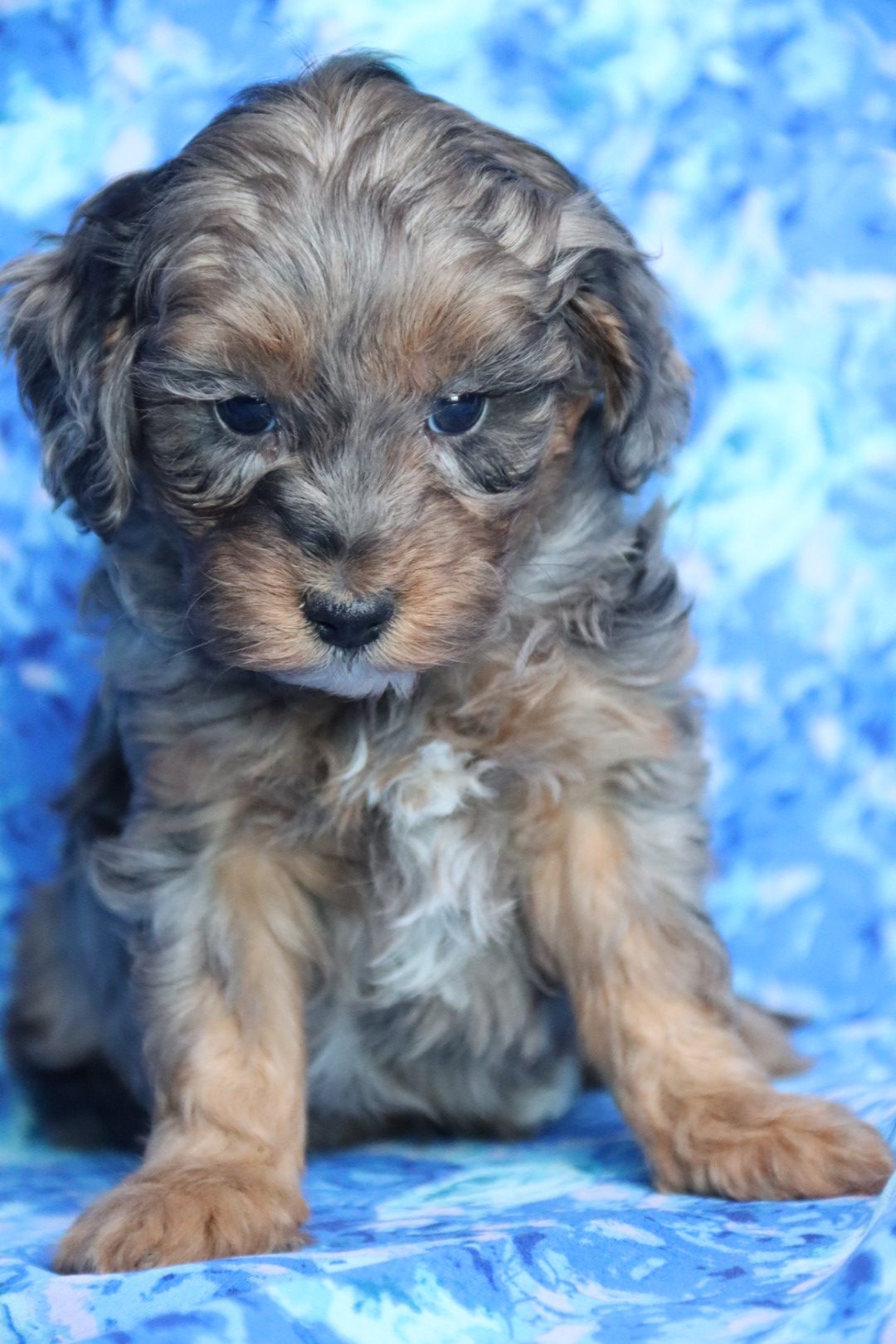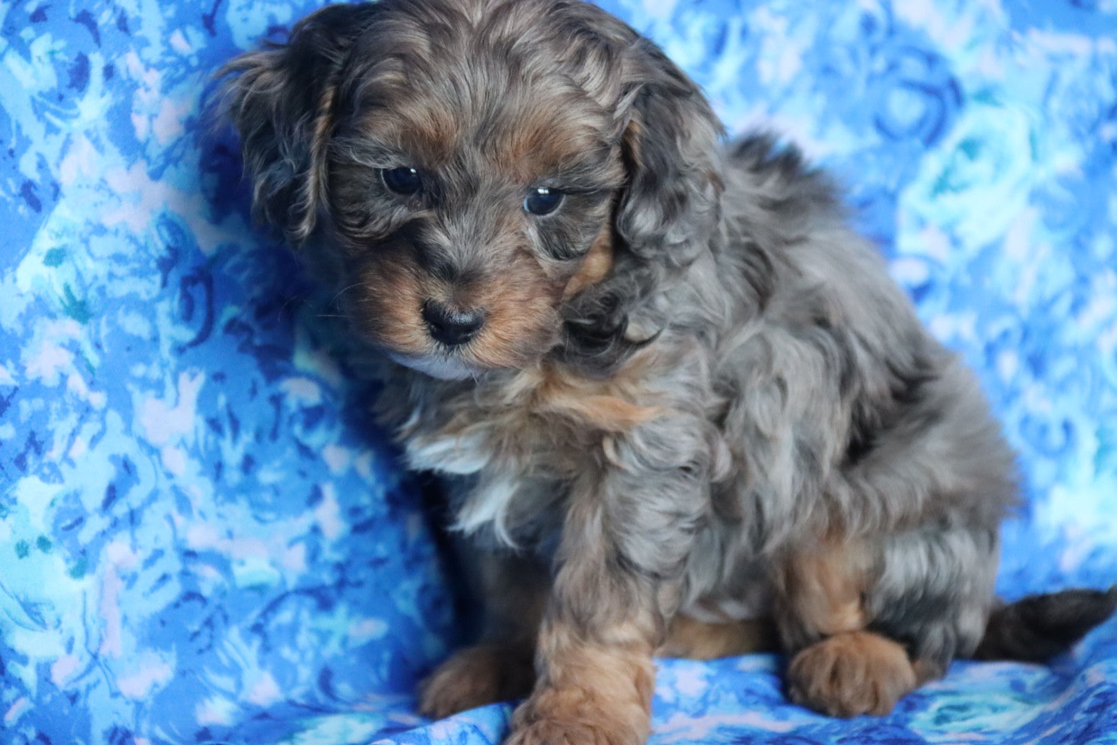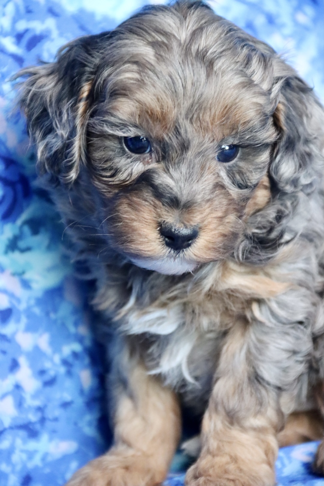 These four babies are true boutique companions — non-shedding, hypoallergenic, highly intelligent, and bred for health, temperament, and exclusivity. Their blue merle phantom patterning is among the rarest color combinations in Maltipoos, making each puppy a living work of art.